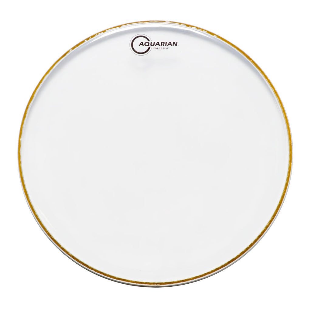 The Aquarian Force Ten™ uses two 10mil plies of Aquarian Nu-Brite drumhead film to create a head with a greater attack, greater depth, and a quicker decay. The patented Safe-T-Loc hoop prevents the head from slipping, and the Sound Curve collar design provides Responsive Tuning. This clear, 20mil thick batter head is right at home with large drums and 'heavy hitters.' Also available in a texture coated version.