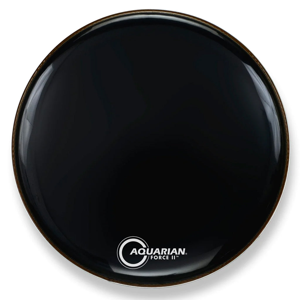 The Full Force™II (FRBK) Black, single ply, medium weight Resonant bass drumhead features a “vented” acoustic muffling ring tucked into the hoop on the underneath side of the head. The muffling ring helps control overtones and features vent holes along its perimeter that allow the ring and head to move as one.