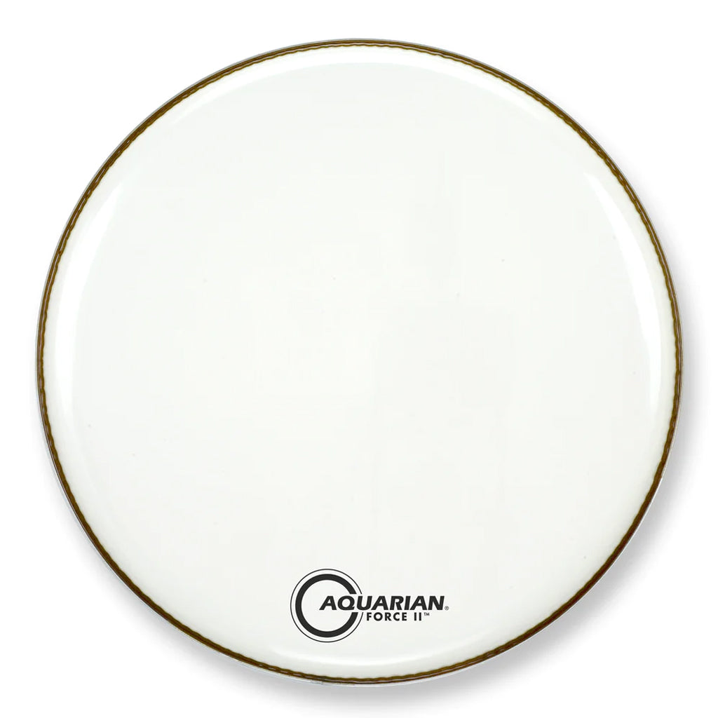 The Full Force™II (FRWH) WHITE, single ply, medium weight Resonant bass drumhead features a “vented” acoustic muffling ring tucked into the hoop on the underneath side of the head. The muffling ring helps control overtones and features vent holes along its perimeter that allow the ring and head to move as one.