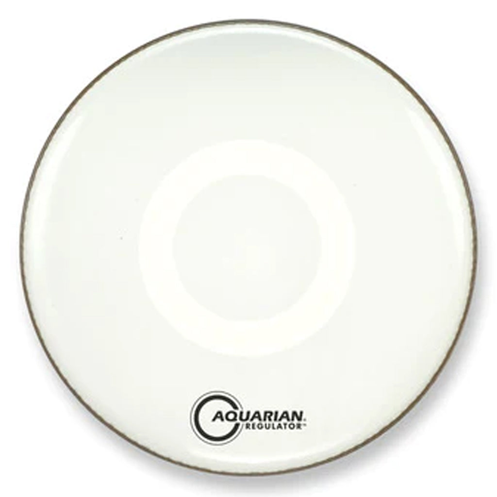 The White Regulator RF model is a single-ply, resonant bass drumhead that features a small, center-positioned, Floating Muffling Ring for added resonant control. This patented Aquarian innovation eliminates the need for external muffling of the resonant head. The Small floating Super Kick ring allows the no Port RF Resonant BD Head to add body to the bass drum sound while controlling annoying overtones and adding to the focused punch.