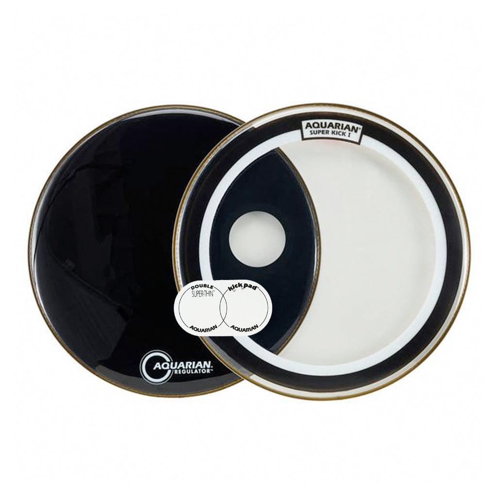 Kick Pad™: These patented impact pads are made from a heavier version of Aquarian’s Power Dot™ material. Each pad is strong yet flexible so that it can move with the head. They help extend the life of the bass drumhead while helping to produce a punchy, focused sound. They are available in a double pedal version.