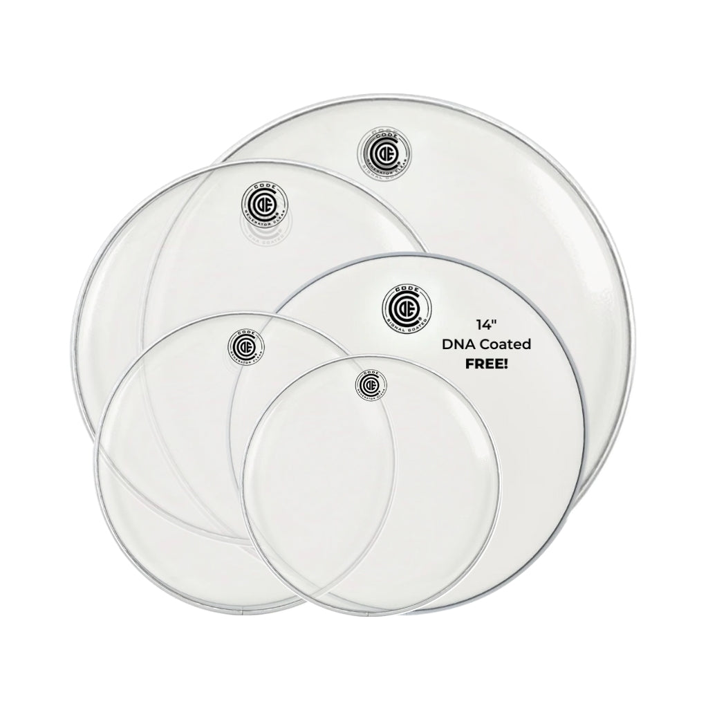 Code Generator Clear Tom Head Fusion+ Pack – 10/12/16/22" is engineered for drummers who demand punch, clarity, and durability. Designed by drummers, for drummers, Code combines traditional manufacturing with modern innovations to produce a premium range of drum heads. Each head is built from the highest quality PET polyester film and features Code’s unique Grip-Tight™ rim technology. This double-knurled solid steel core crimped into a high-grade aluminium rim ensures a secure fit, fast and accurate tuning, free resonance, and long-lasting stability. All Code products are also 100% recyclable, delivering both performance and sustainability.
