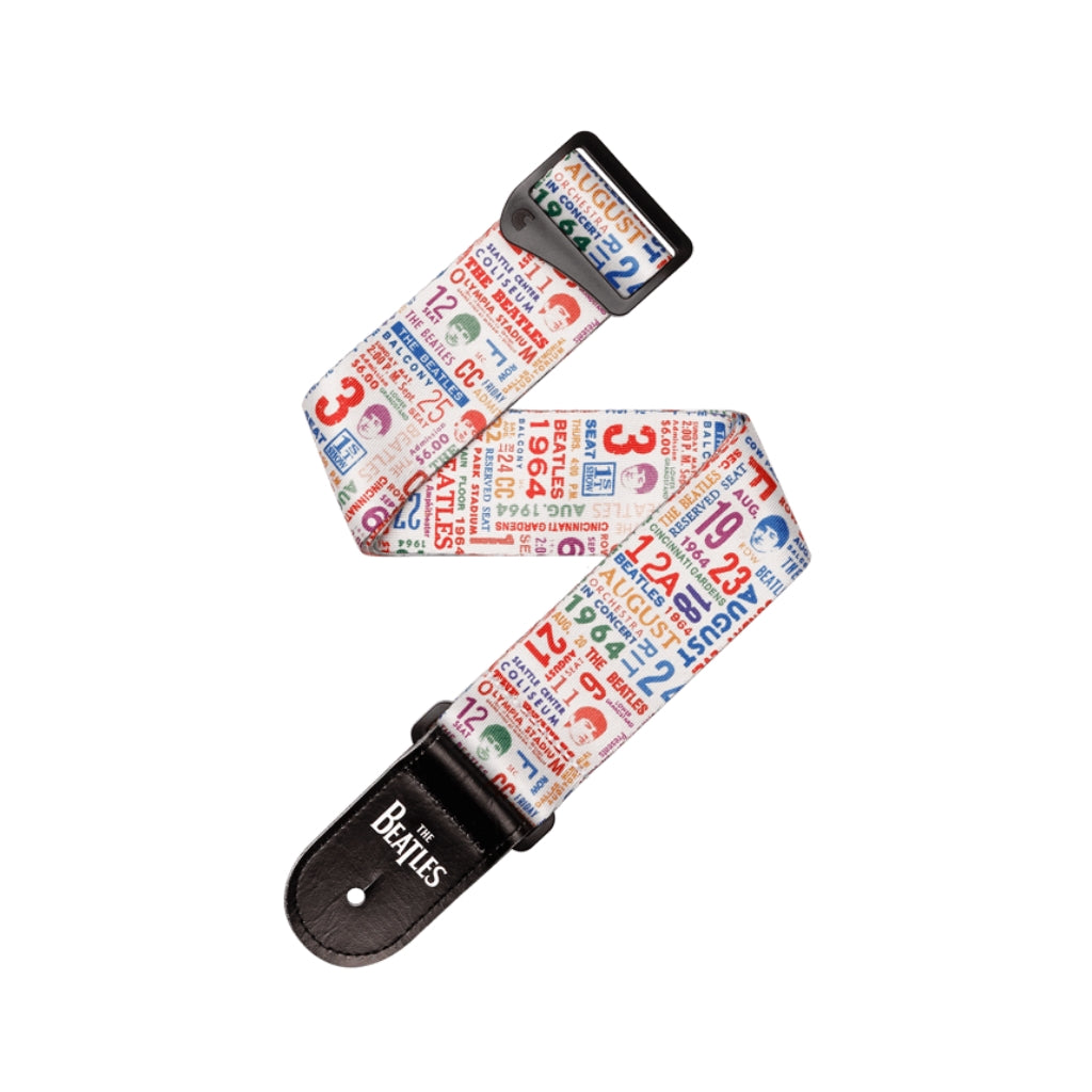 Celebrate 60 years of the Fab Four with straps and picks inspired by the original ticket stub artwork from the Beatles’ first US tour in 1964. These vibrant and custom-designed collectors’ items will let you show your love for the lads in style and comfort. Straps available in Multi-Color and Black and White.
