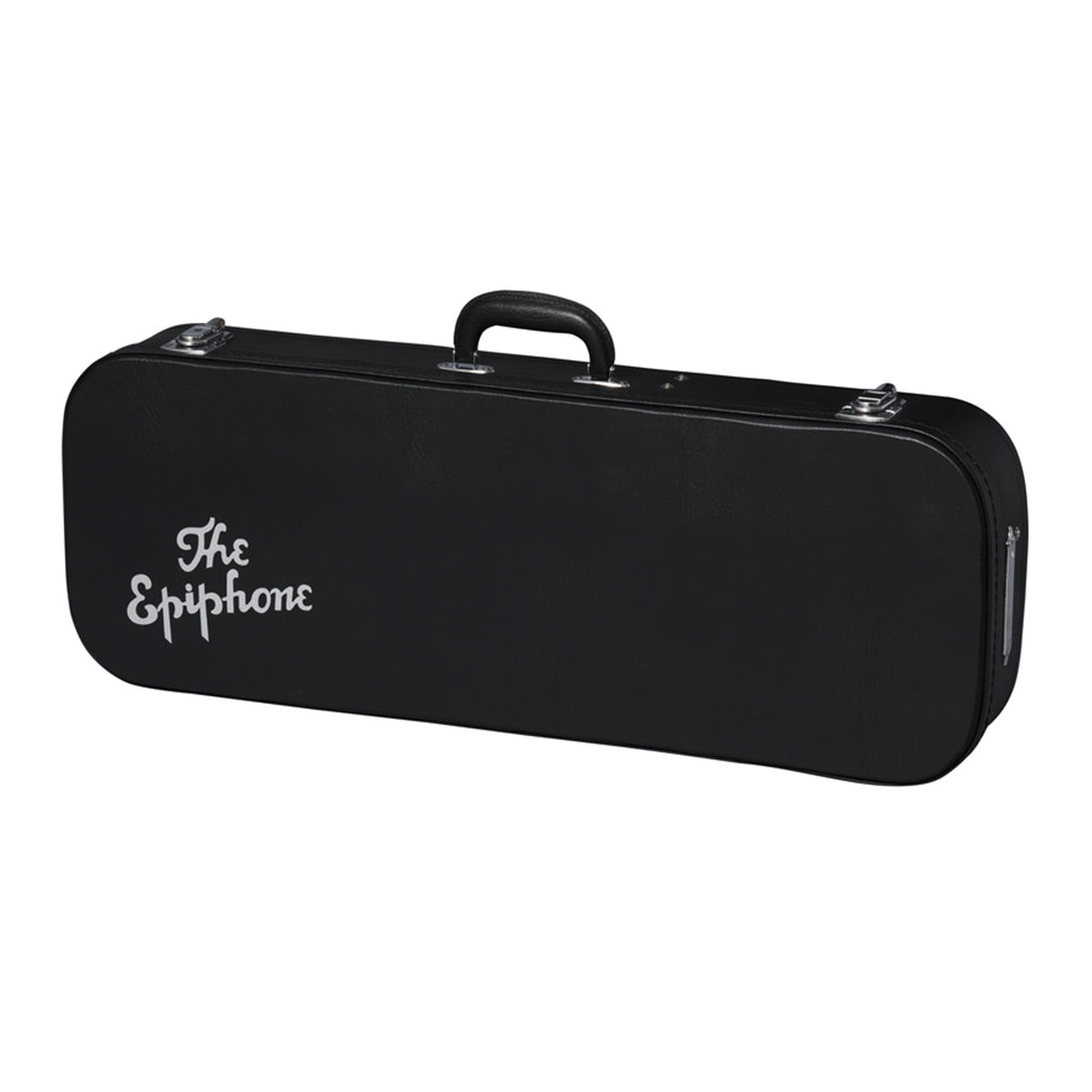 It features all solid wood construction with a figured maple back and sides and a solid Sitka Spruce top. The figured maple neck has an ebony fretboard with a compound radius (10” at the nut, 12” at the end of the fretboard) and an F-style scroll headstock with vintage-style tuners with pearloid buttons. Ornate touches include the three-ply top binding, mother-of-pearl “The Epiphone” and flowerpot headstock inlays, and the rich Cremona Sunburst finish. Whether you’re playing rhythmic chops or lead lines, its tone is balanced, deep, and resonant, with great carrying power.