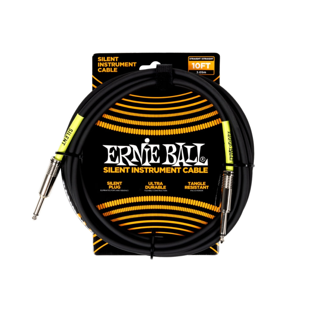 Eliminate unwanted noise and achieve crystal-clear tone with the Ernie Ball Straight to Straight Silent Instrument Cable – 10ft. Designed for seamless instrument switching, this cable features an integrated silent plug that automatically mutes your signal when plugging and unplugging—no more pops or squeals from your amp. Built for premium performance, it delivers rich harmonics, crisp highs, and tight mids, making it ideal for live performances, studio sessions, and rehearsals.