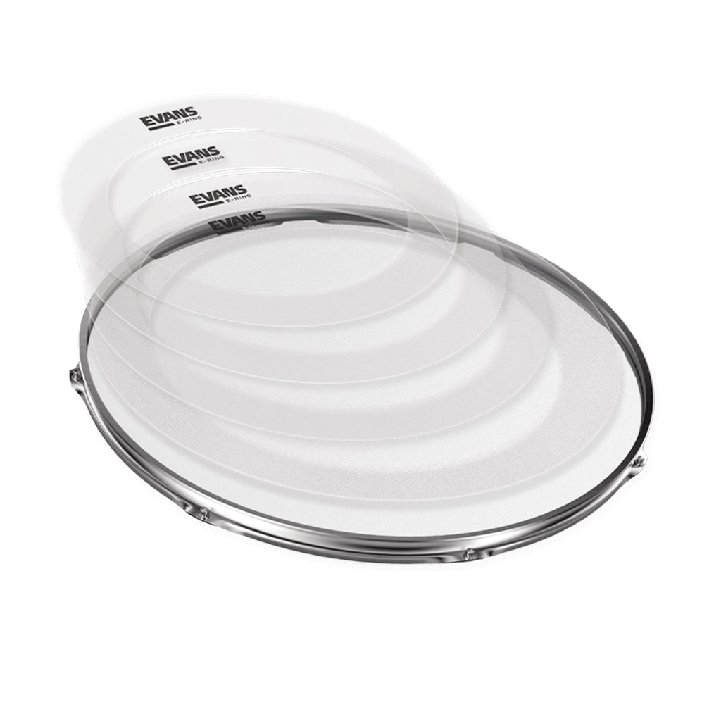 The Evans E-Ring Packs contains easy-to-use external overtone control rings that float on the surface of a drumhead to remove overtones and flattens the drumhead's sound, allowing for easier tuning.