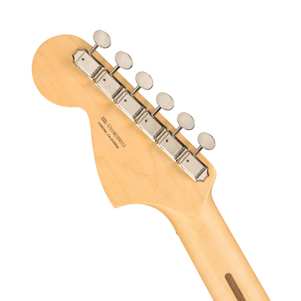 The American Performer Mustang harks back to what was originally created as a student guitar, which now maintains the 24” scale length. The scale coupled with the body shape makes for an easy play that maintains resonance when strumming, but quickly dials back to clear and concise fretted notes when required.