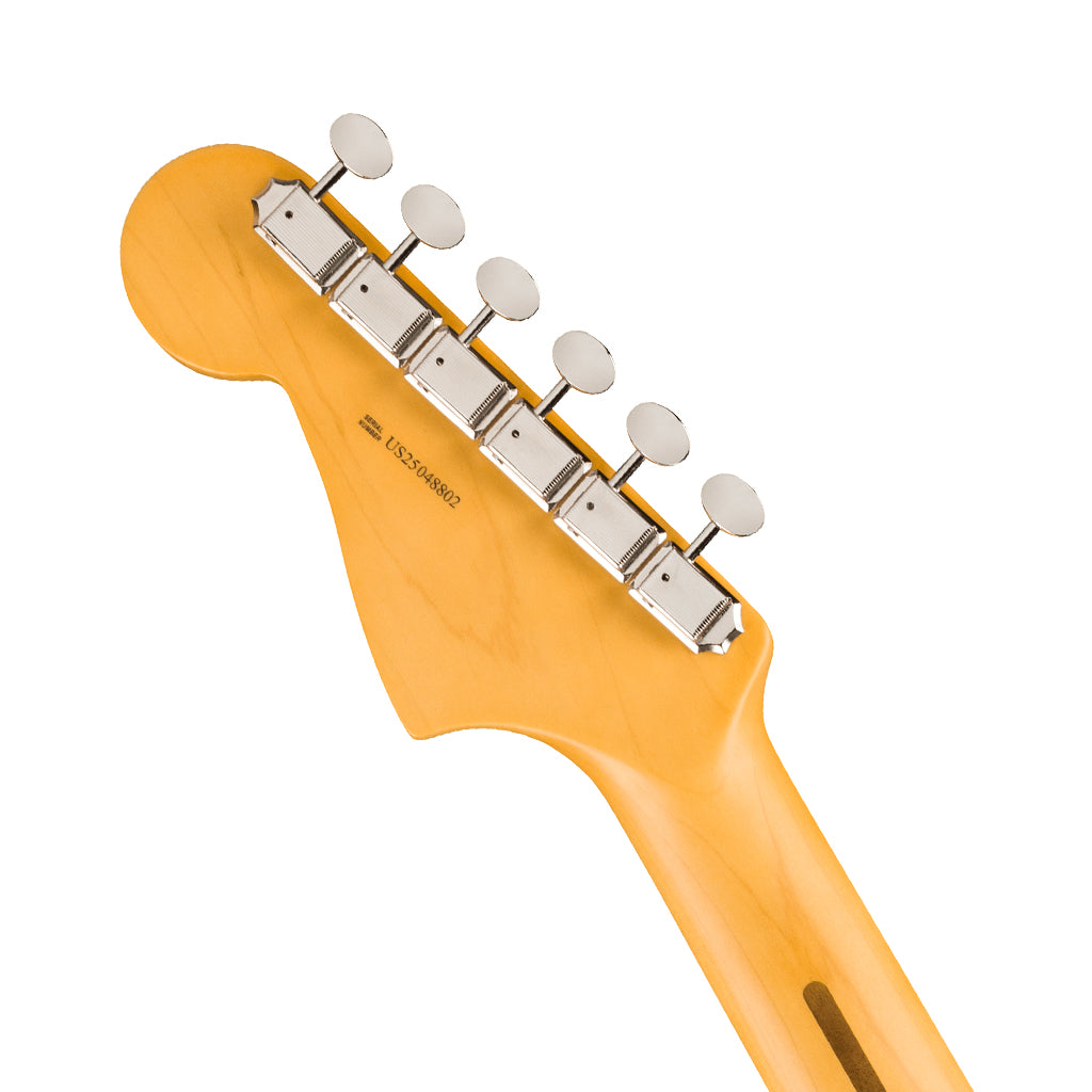 Playability is incredibly comfortable and fast with the sleek Modern "C" neck profile. Featuring a 9.5"-radius fingerboard and Medium Jumbo frets, the neck offers an effortless playing experience, perfect for complex chords and expressive lead work. Visually, the offset alder body boasts custom-faded vintage and signature Fender finishes. Premium hardware, including Fender Staggered ClassicGear™ tuners and vintage-style appointments, ensures precise, rock-solid tuning stability alongside an iconic aesthetic.