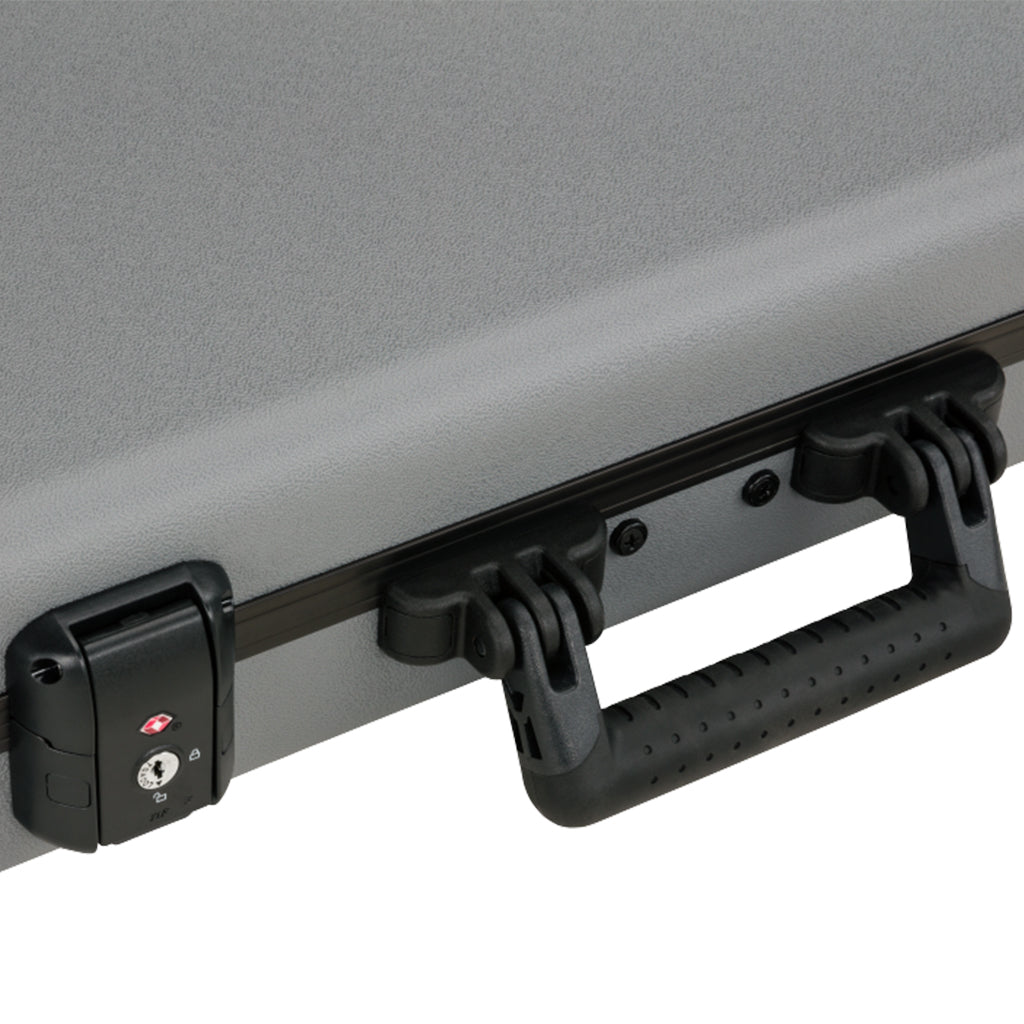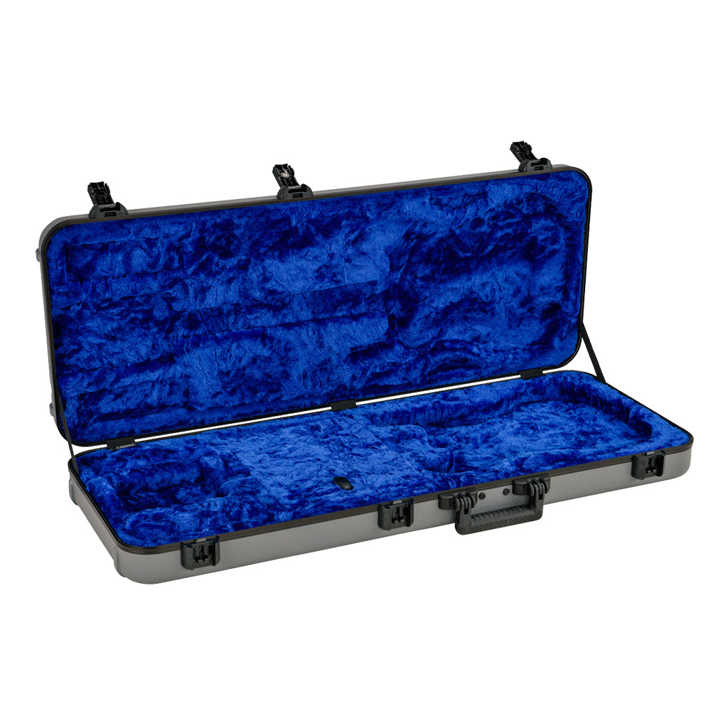 Sleek and stylish, the Inca Silver Deluxe Molded Case with Lake Placid Blue interior to transport and store you Stratocaster or Telecaster guitar designed specifically for your instrument. Combining advanced materials with a new nested stacking design and TSA-accepted locking center latch, this case will help your guitar arrive at its destination unharmed. From the rock-solid military-grade outer shell to the comfortable handle and high-grade plush interior lining, every element of this case has been engineered to create the ultimate in instrument protection. The large interior center pocket is the perfect place to stash accessories like picks, cable and straps, while helping to stabilize the neck during transport. Thanks to the rubberized feet on the hinged edge, you can enjoy additional stability—no more worrying about your case tipping over when you set it down.