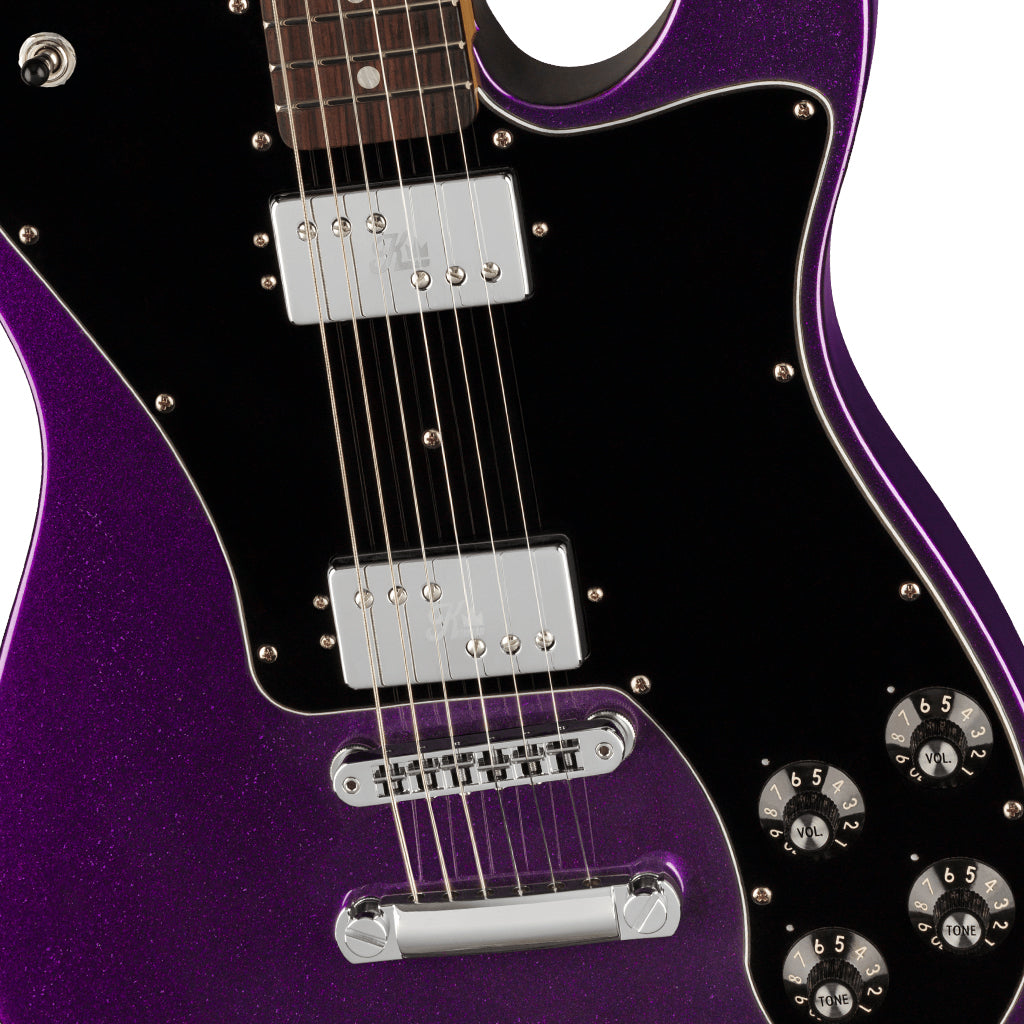 The Kingfish Telecaster® Deluxe features two custom humbucking pickups voiced for growling, overdriven blues-rock and an adjusto-matic bridge for perfect intonation. The “V”-shaped roasted maple neck has a classic feel while the 12” radius slab rosewood fingerboard delivers chunky tones and big bends. The mesmerizing Mississippi Night finish has a shimmering purple glow that recalls a dark winter sky in Clarksdale. Other special features include Kingfish’s signature on the headstock, a custom neck plate and a “K” crown logo on the pickup covers.