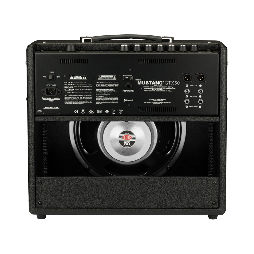 Built-in Wi-Fi keeps your amp current with firmware updates and new presets, while Bluetooth connectivity lets you stream music wirelessly for practice or performance. The free Fender Tone 3.0 smartphone app provides full remote control with realistic knob-style editing, turning your phone or tablet into a powerful tone-shaping interface. Compact, versatile, and loaded with professional features, the Mustang GTX50 is ready for home practice, recording, rehearsals, and small gigs.