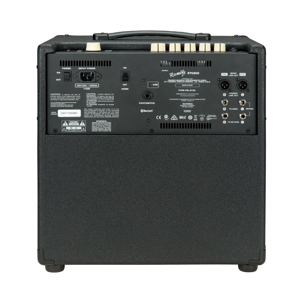 Control and customize your sound wirelessly using Bluetooth and WiFi, with full access to the Fender Tone app, artist presets, firmware updates, and a vibrant player community. Thanks to a full-color LCD screen, onboard looper, and versatile connectivity—including XLR outs, USB recording, and stereo FX loop—the Rumble Studio 40 delivers an inspiring, flexible experience for bassists of every level.