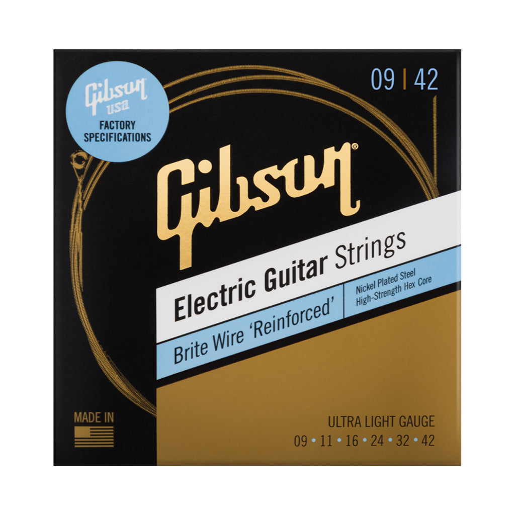 Developed and approved by our Master Luthiers, Gibson Brite Wires are the factory specification strings used at the Gibson USA facility. These strings feature a high-carbon steel, hex-shaped core precision-wound with nickel-plated steel, providing unmatched durability and powerful tone. Discover the superior sustain and bright, crisp attack that is suitable for nearly any playing style.