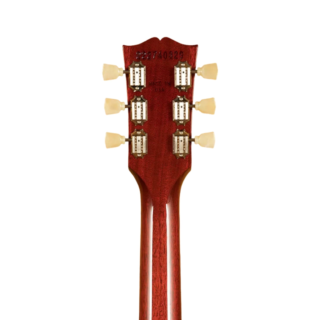 With a solid mahogany body and a stunning maple top, this Les Paul delivers the warmth, resonance, and sustain you’d expect from a true classic. The rounded ’50s-style mahogany neck and rosewood fingerboard offer familiar comfort and effortless playability. A set of calibrated Burstbucker pickups—Burstbucker 1 in the neck and Burstbucker 2 in the bridge—deliver that unmistakable PAF-style tone, rich in dynamics and harmonic complexity. Topped off with period-correct hardware like the ABR-1 Tune-O-Matic bridge, aluminum Stop Bar tailpiece, and aged gold Top Hat knobs, this guitar exudes vintage class.