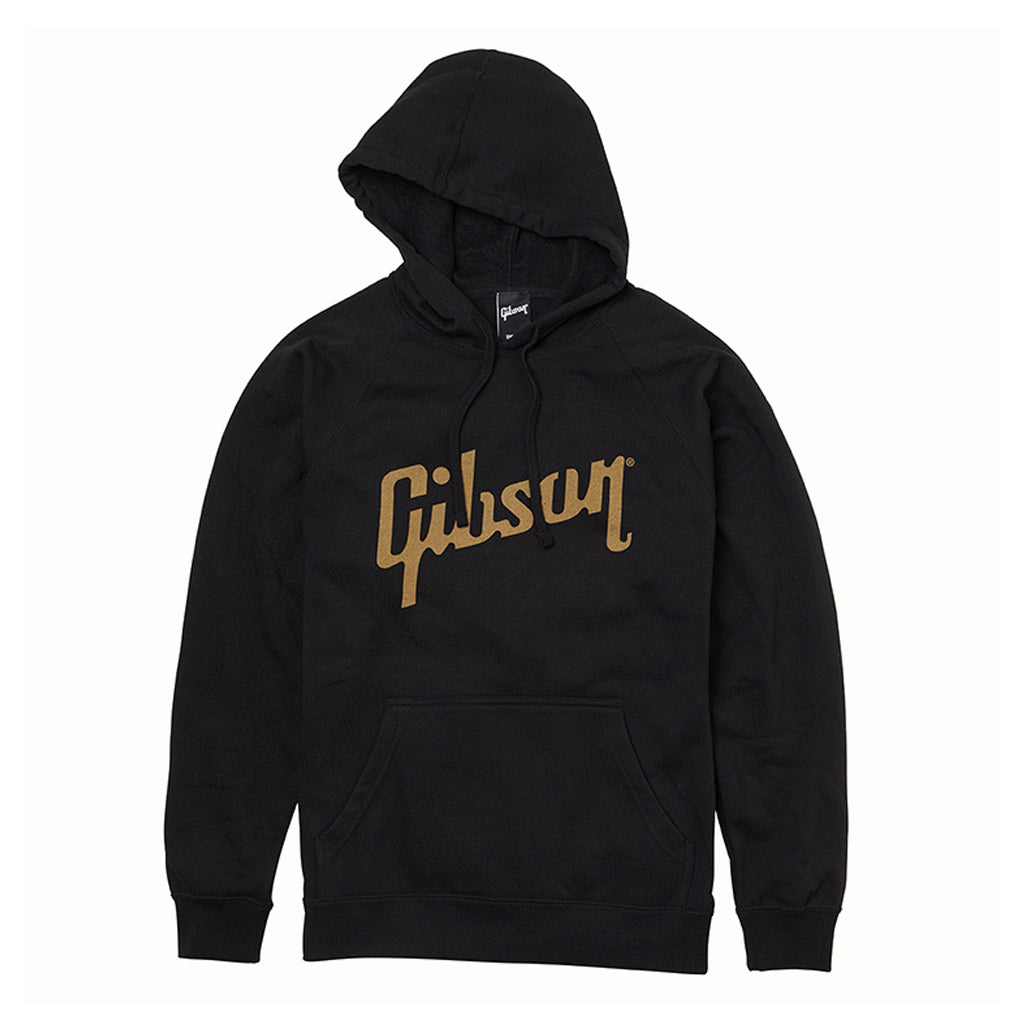 Classic black unisex hoodie featuring the historic Gibson logo in gold across the chest - found on all Gibson instruments since the late 1940s.