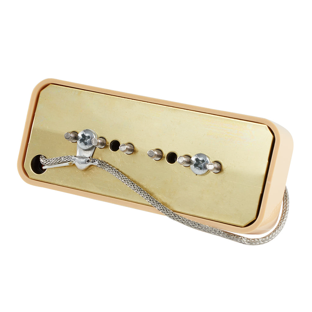 First introduced in the early 1950s, Gibson's legendary P-90 single coil pickup produced a raw powerful tone that helped define the blues and rock and roll in their formative years. Today, the P-90’s traditional combination of high output and brilliant tone is still considered a favorite among many top musicians. Known by such familiar nicknames as the “Soapbar” and the “Dogear” (both of which describe the two main styles of pickup covers used with P-90 pickups), the P-90 still cuts through any type of music, all while displaying amazing tonal sensitivity for everything from blues and rock to mellow jazz riffs. It's perfect as a vintage replacement and features vintage, braided two-conductor wiring. It's also fully wax potted to eliminate any chance of unwanted microphonic feedback.