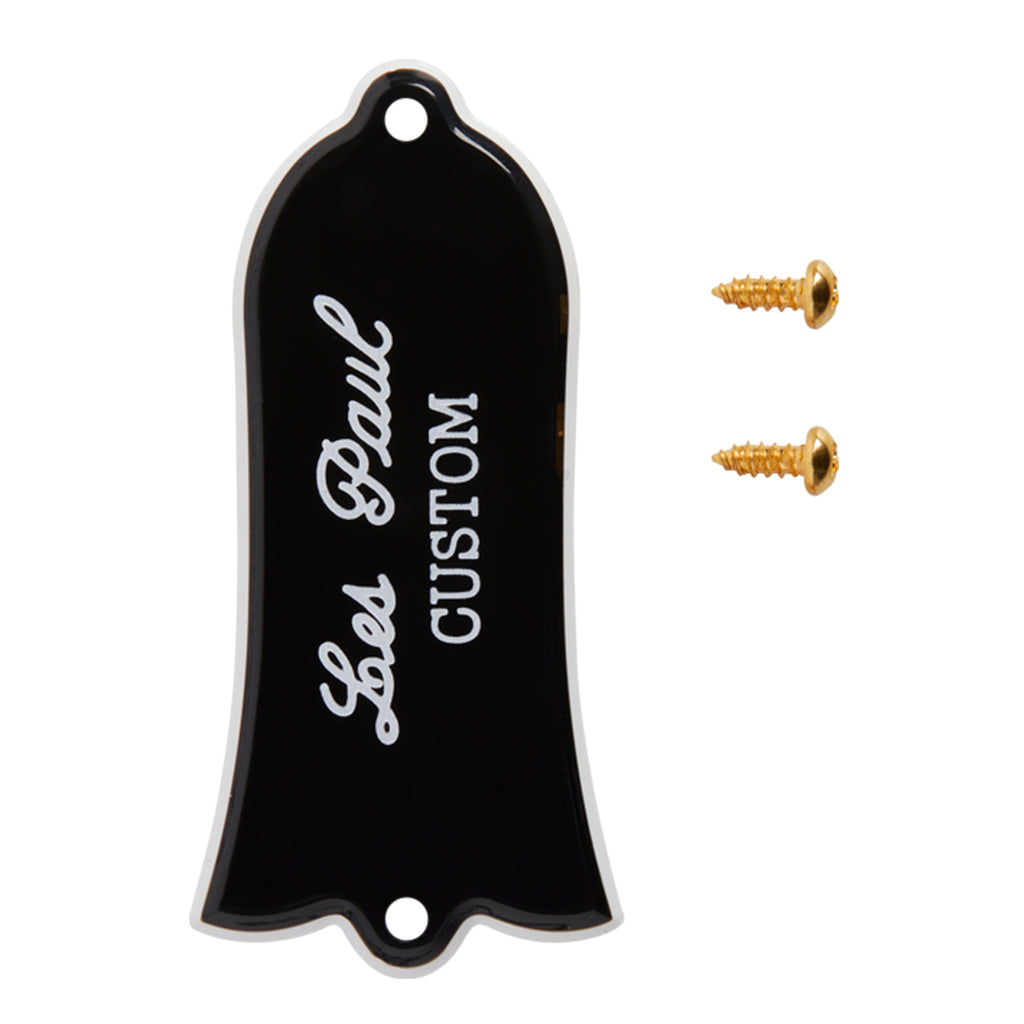 An original, molded OEM replacement truss rod cover to make your Gibson Les Paul Custom look exactly as it did the day it left the factory, including the screws for installation. This two-ply truss rod cover is made of ABS plastic and features the distinct Les Paul Custom script logo.
