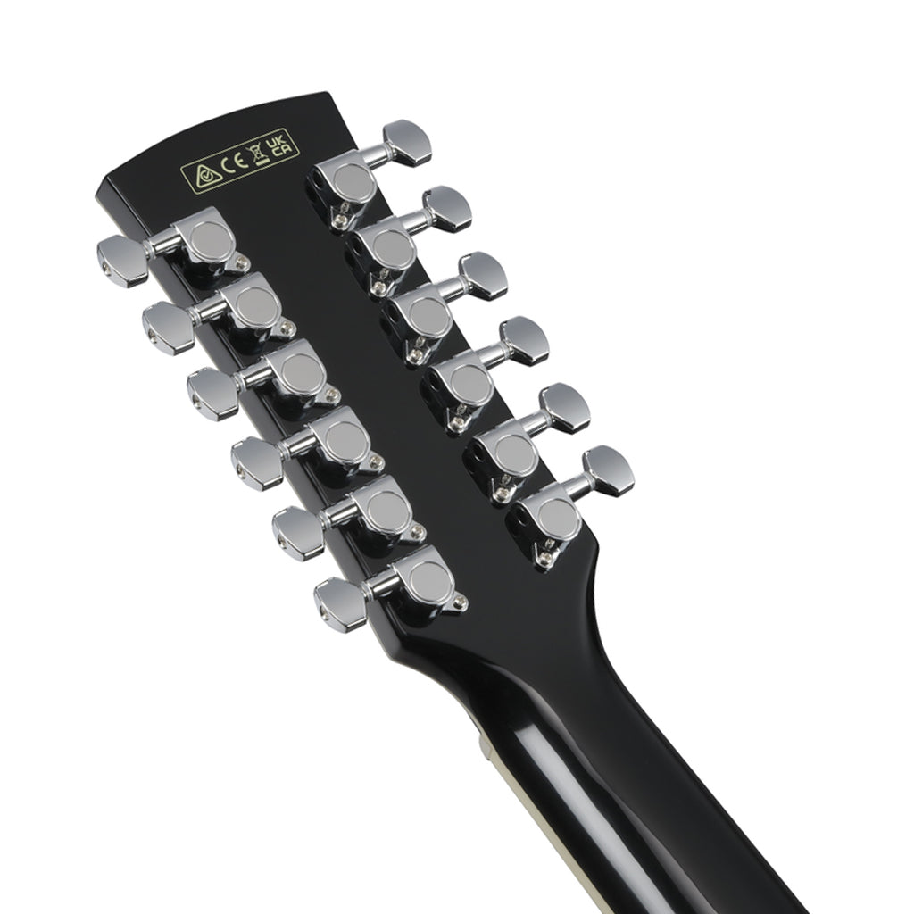 The Ibanez AJ7012M1E provides an expansive tonal palette characterized by shimmering highs and a full-bodied low end. Built with a Solid Sitka Spruce top and Okoume back and sides, this 12-string model generates a woody, warm tone that projects clearly whether finger-picked or strummed. Equipped with the Ibanez AEQ-TP2 preamp, it is a stage-ready instrument that combines natural acoustic resonance with modern electronic control.