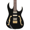 Paul Gilbert is a musician who is difficult to categorize, from his early years with Racer X and Mr. Big to his varied solo career and position as one of the world's top shredders. His passion for Ibanez instruments has remained steady over the vast majority of his career, though. The Ibanez Paul Gilbert Signature PGM50 features an exceptionally light American basswood body that beams with resonance and sustain, and was built from the ground up to fit Paul's demanding specifications. The PGM50's 5-piece maple neck and rosewood fingerboard are filled with a slew of high-performance features, including fast-playing medium frets and Ibanez's Premium fret edge treatment for a smooth, friction-free feel, as befits a virtuoso of Paul's caliber. Next, Paul's own highly varied musical range is precisely reflected by the PGM50's HSH Trio of Air Classic humbuckers and a middle-position PGM single-coil. Finishing touches include a hardtail F106 bridge in gold, Gotoh MG-T locking tuners, and Paul's distinctive faux F-hole finish in a complementary golden tint.