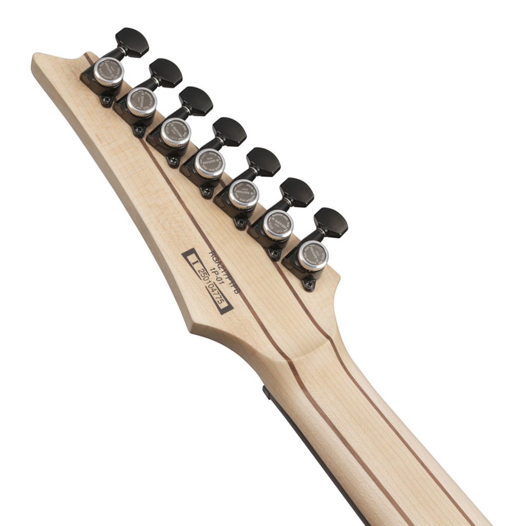 Ibanez's thin, flat and fast Wizard-7 5-piece Maple/Walnut Neck is strong and sturdy and offers unlimited playability for demanding players.
