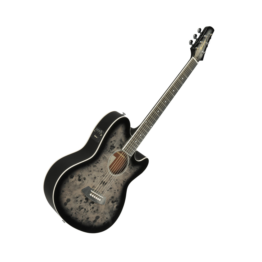 You've noticed by now that we at Ibanez hold a studious respect for tradition. That said, every now and then you have to hang a right where everyone else is turning left. The double-cutaway Talman is our rebel with a cause. Electric players looking to add an acoustic-guitar dimension to their arsenal go headover- heels for this distinctive hybrid.