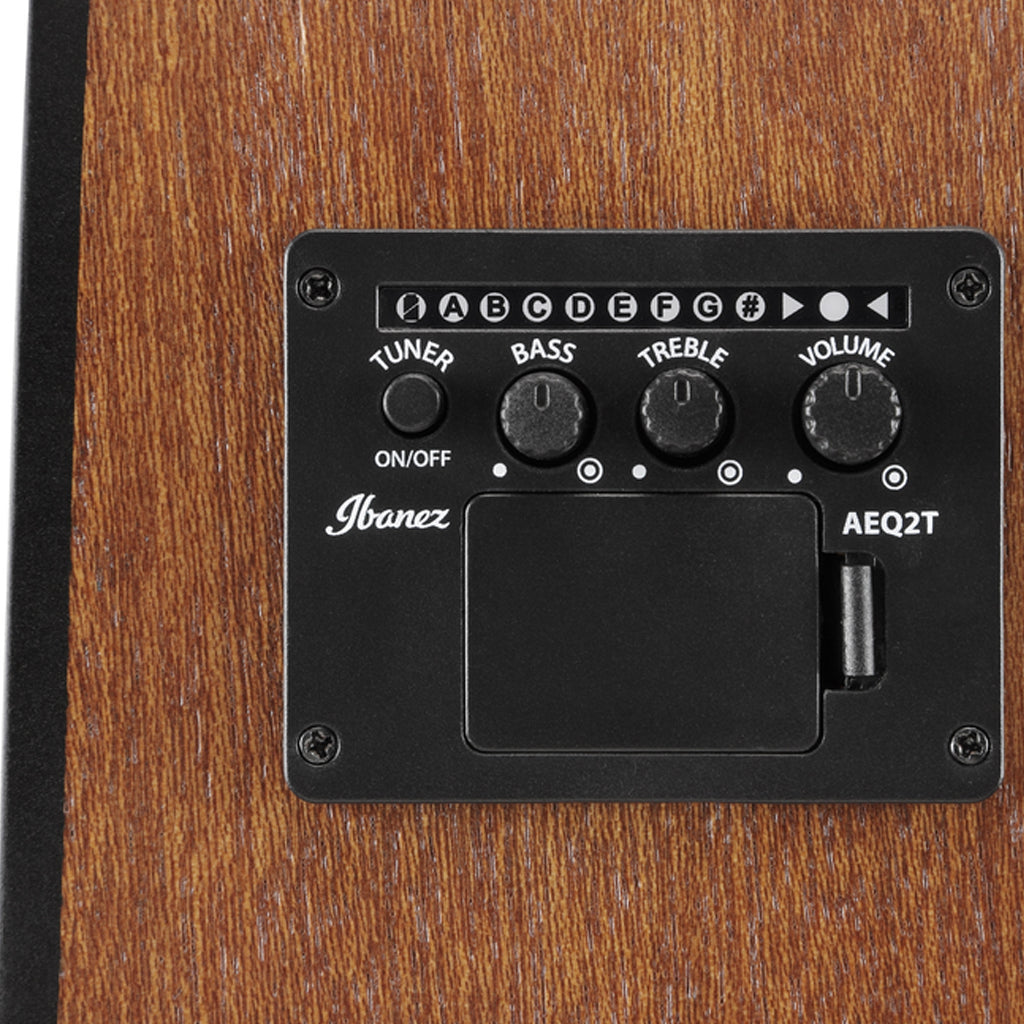 The Ibanez V40CE dreadnought acoustic guitar features Spruce top with Meranti back and sides, Meranti neck with a C shape, a Nandu Wood fretboard and Bridge with Advantage™ pins, an Ibanez Undersaddle Pickup, and an AEQ-2T preamp.