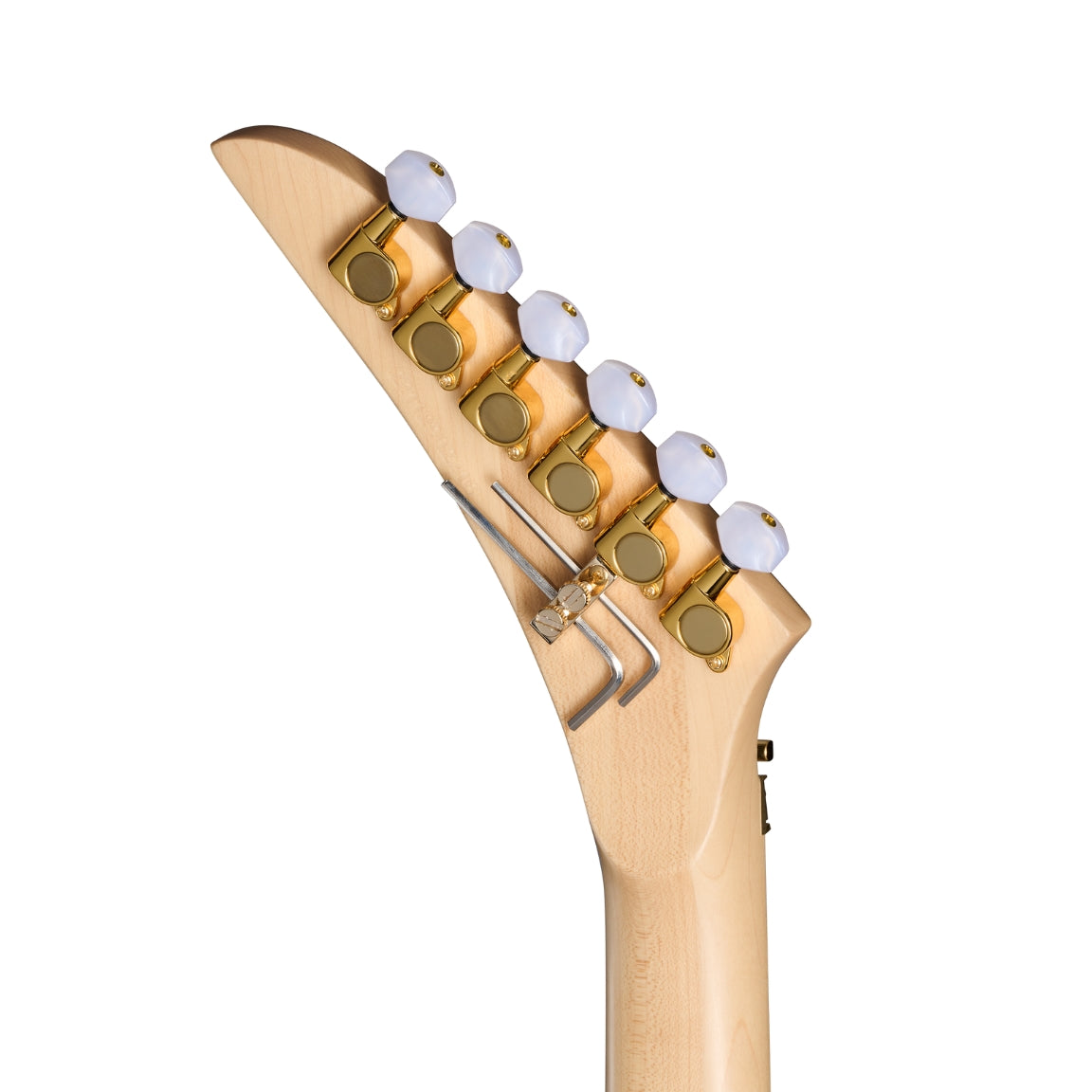 The Kramer Jersey Star is designed for players who want more - more pickups, more speed, and more in-your-face Kramer attitude! Part of Kramer’s Original Collection, the Jersey Star was first released in the 1980s and, over the years, has been one of our most popular models. This updated version features gold hardware, a three-piece maple neck with a satin finish, an elliptical C profile for speed and comfort, and a 25.5” scale length. The maple fretboard sports 22 jumbo frets and laser-cut mother-of-pearl star inlays. The alder body also features a mother-of-pearl star inlay. It packs a trio of Kramer USA Neptune humbucker™ pickups paired with a master volume control, a five-way pickup selector switch, and individual coil tap mini switches for the bridge and middle pickups. The Kramer “pointy” headstock also has a mother-of-pearl star inlay, along with a Floyd Rose® R2 locking nut that, along with the Floyd Rose 1000 Series tremolo, keeps everything solidly in tune, regardless of how wild you get with the wiggle stick acrobatics. A premium gig bag keeps this Star safe and secure, no matter where the road may take you.