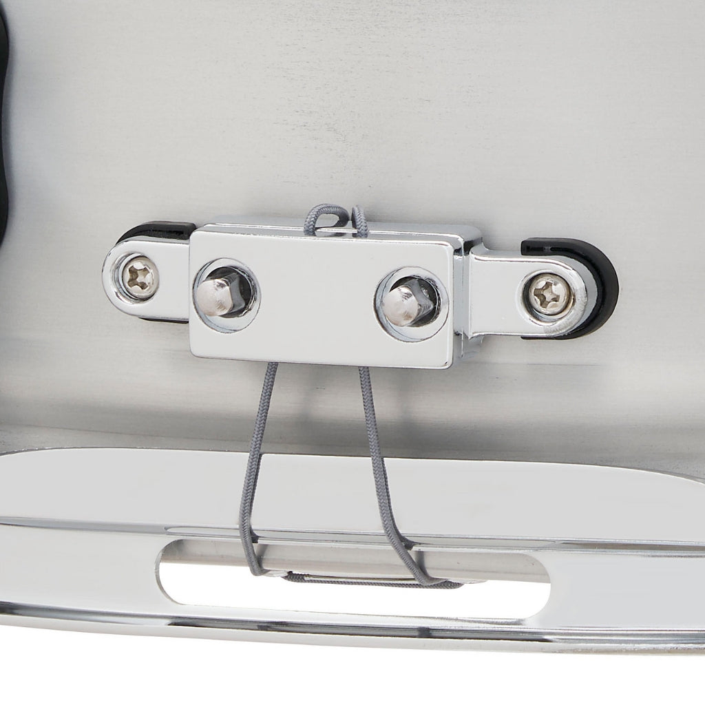 The PDP Concept Series Aluminum Snare is a well-built metal snare that is balanced in tone and expertly crafted around every curve. It starts with a fantastic shell: a 1mm-thick precise cut of rolled and double-beaded aluminum for a tonal base that is accented by a rounder sounding attack, but with a dryer resonance that gives your backbeats a little more oomph. This superb aluminum foundation is fully equipped with chrome-finished hardware, and the perfect center-mounted/dual turret lugs and True-Pitch tuning rods guarantee that your tuning will remain accurate take after take and show after show. PDP's iconic MAG throw-off marks snare engagement with swiftness and silent authority, while lightweight and protective triple-flanged hoops participate in the celebration.