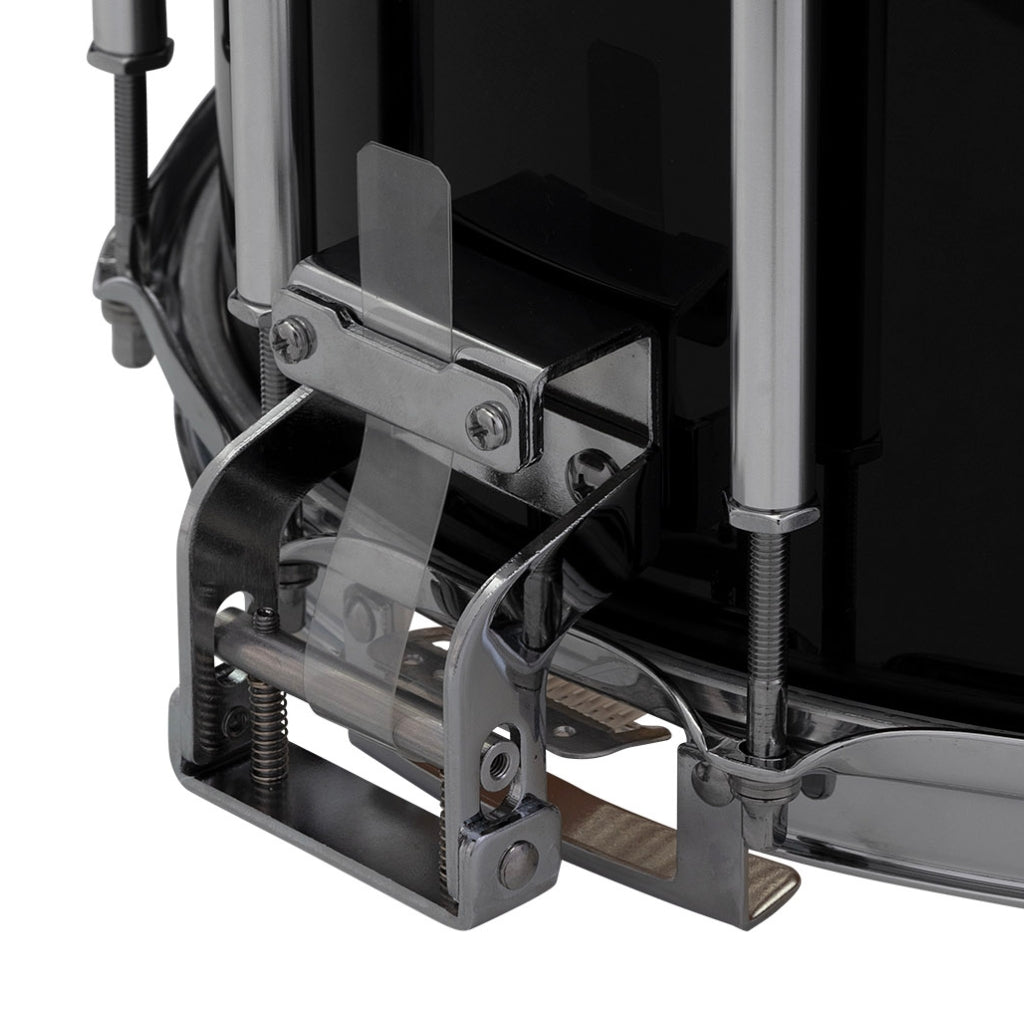 • Lever Action Strainer. The CMSX's lever-action strainer provides a smooth yet secure motion, turning the snare guts on and off.  The strainer also allows for adjustment of the guts in relation to the bottom head.