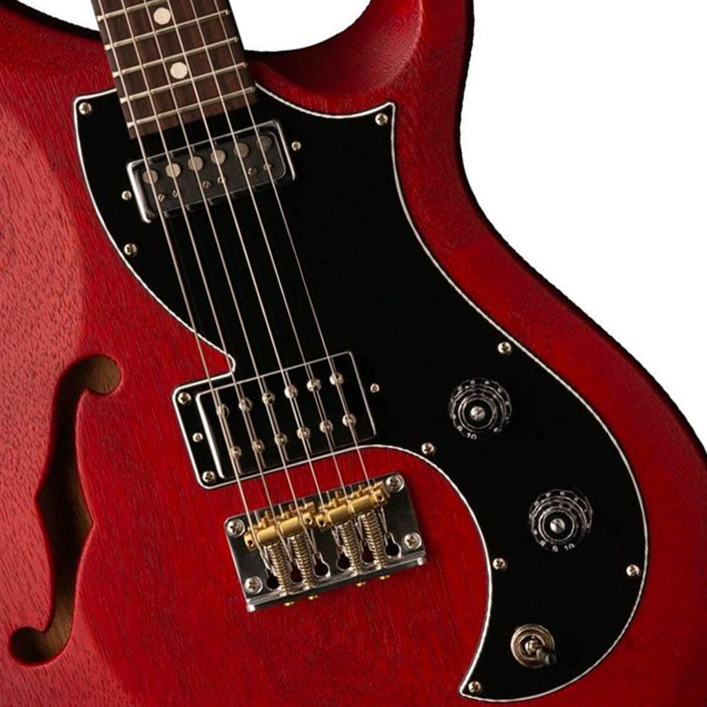 The S2 Vela Semi-Hollow Satin is a vintage-inspired guitar with loads of personality and tonal textures. The Vela boasts a contemporary offset body shape, and the addition of a semi-hollow body and satin nitro finish gives the Vela added attitude and resonance with a truly addictive feel.