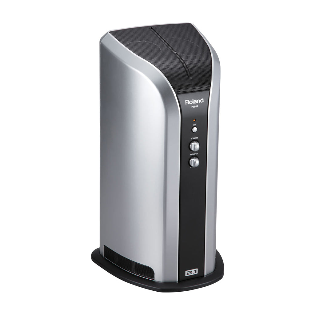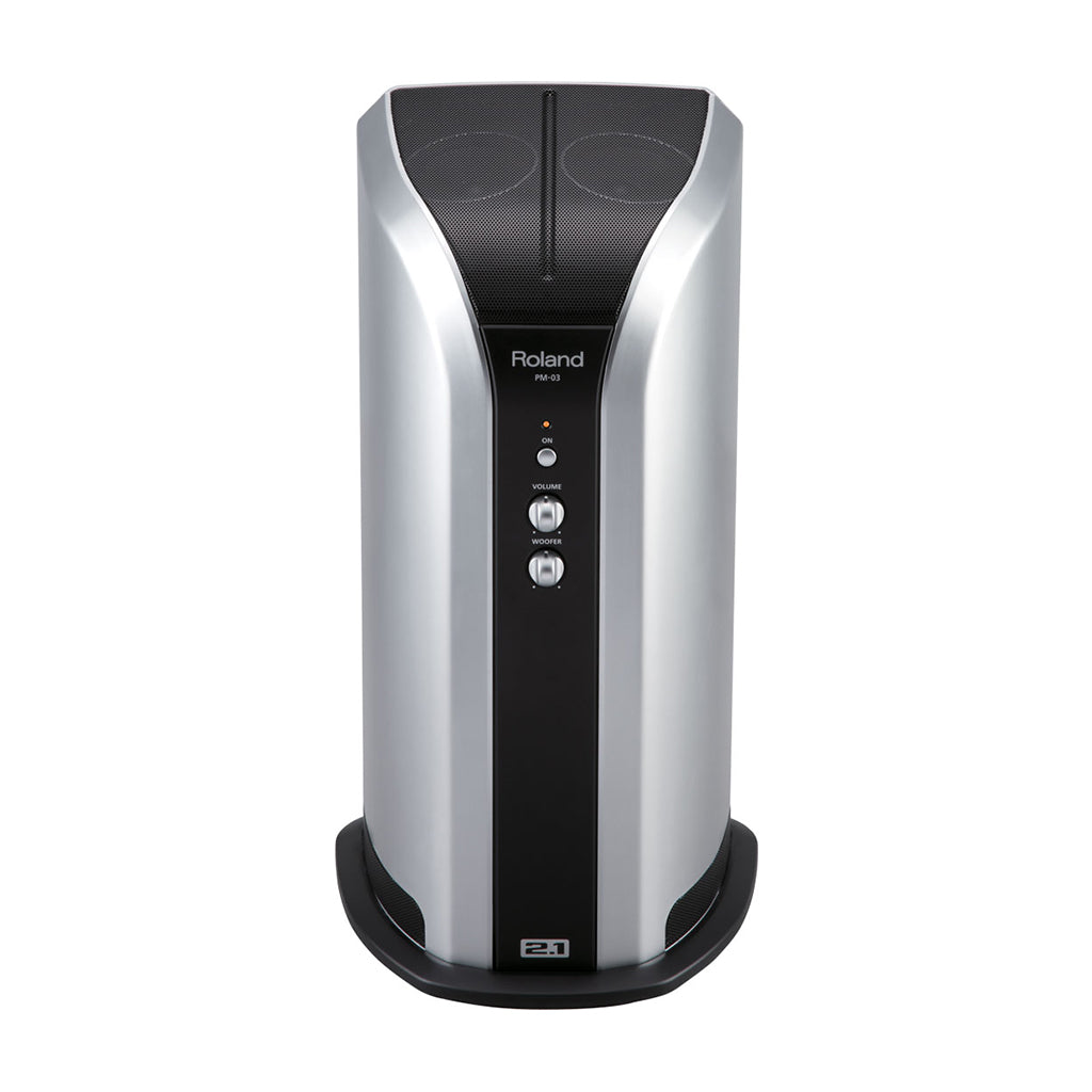 The newest addition to the V-Drums personal-monitor family is the PM-03. Slim and stylish, this space-saving monitor adds a new dimension of sound for V-Drummers — it’s the first 2.1-channel monitor in the PM series, providing a clean, clear stereo image, plus low-frequency coverage. From thunderous lows to sparkling highs, the PM-03 will enhance your personal V-Drums sessions with full-frequency impact. It’s the perfect match, aesthetically and aurally, for Roland’s HD-series V-Drums, but all electronic drummers can plug into the PM-03 as well.