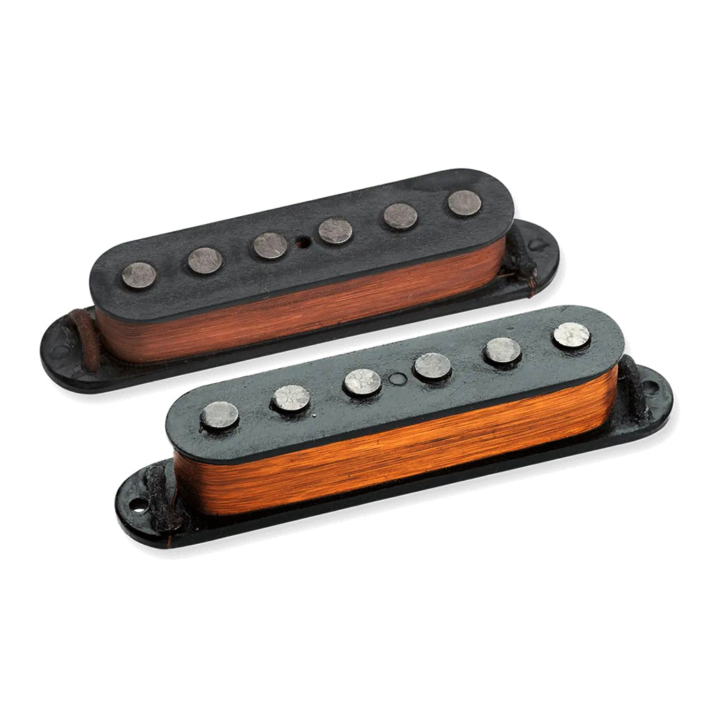 These pickups are drop-in replacements for any Fender American Standard sized Jaguar pickup and will fit into the existing cover and claw. Hand built in our Custom Shop, these vintage Jaguar single coil pickups use Alnico 2 rod magnets, a custom coil wind with heavy formvar mag wire, cloth push-back lead wire, and they are all lacquered and wax potted like the originals.