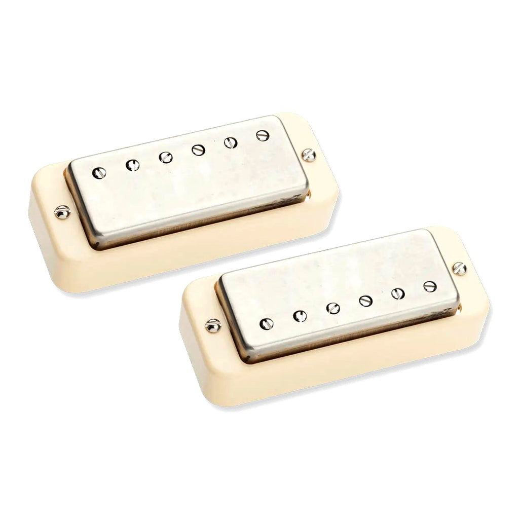 Each Antiquity II Mini Humbucker is hand built and aged to look and sound like the original. We use a hand-cut P90 soapbar cover-sized mounting ring, and these pickups mount to the guitar exactly like an original Les Paul Deluxe. Staying true to this type of ’50s-era Gibson and Epiphone pickups, these vintage mini humbuckers are not wax potted, which takes you right to the edge of harmonic breakup and sustaining feedback.