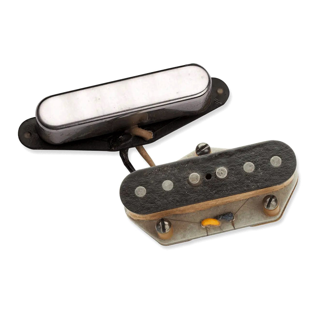 With the Antiquity II Tele vintage pickups, you can get the look and sound of the ultimate ’60s Telecaster. We use custom aged, grey bottom flatwork, brass plated steel bottom plate, vintage push-back cloth wire, and each pickup is lacquered and wax potted, just like the originals.