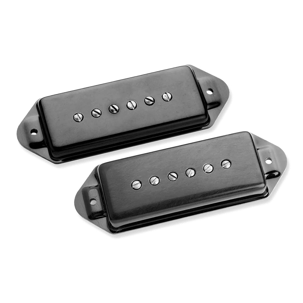 Seymour Duncan's Antiquity P90 Dog Ear pickups use two specially calibrated alnico 2 bar magnets, and custom neck and bridge coil winds to deliver the sweet, vintage correct growl of late 50s ES-330 P90 pickups. In the neck position, chords are full and round sounding, and single notes have a sweet, bouncy quality.