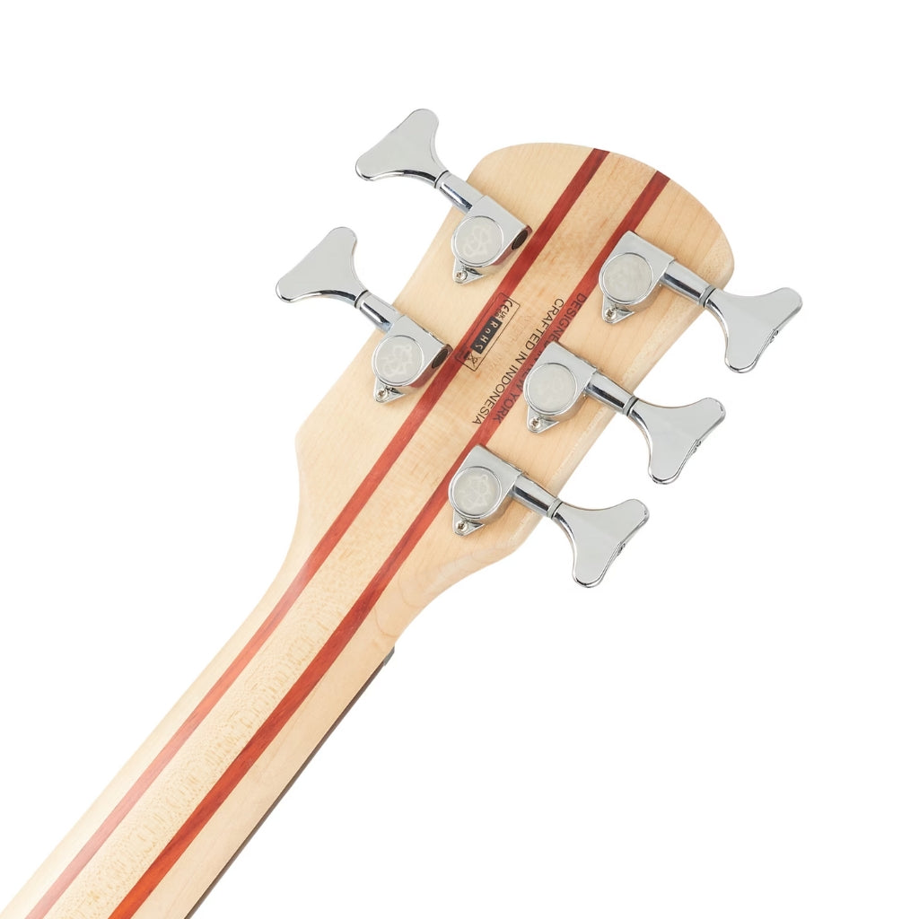 The Legend 5 Standard offers the coveted Spector NS body design at a price that is well within the reach of all bassists. The extremely comfortable curved body is crafted from lightweight, solid ash and sports a genuine flame maple top. The five-piece maple and padauk neck features a 24 fret amara fingerboard that’s perfectly tapered for comfort. The Legend Standard also features professional quality chrome hardware, including hi-mass bridge that provides rock solid intonation and performance. Specially designed Spector humbuckers provide this bass with a clear, punchy tone. The pickups are complemented by a versatile two-band active EQ controls that offer 12dB of boost or cut for both treble and bass controls. Adorned with a high gloss finish, the Legend 5 Standard provides the looks, tone, and feel of basses twice its price.