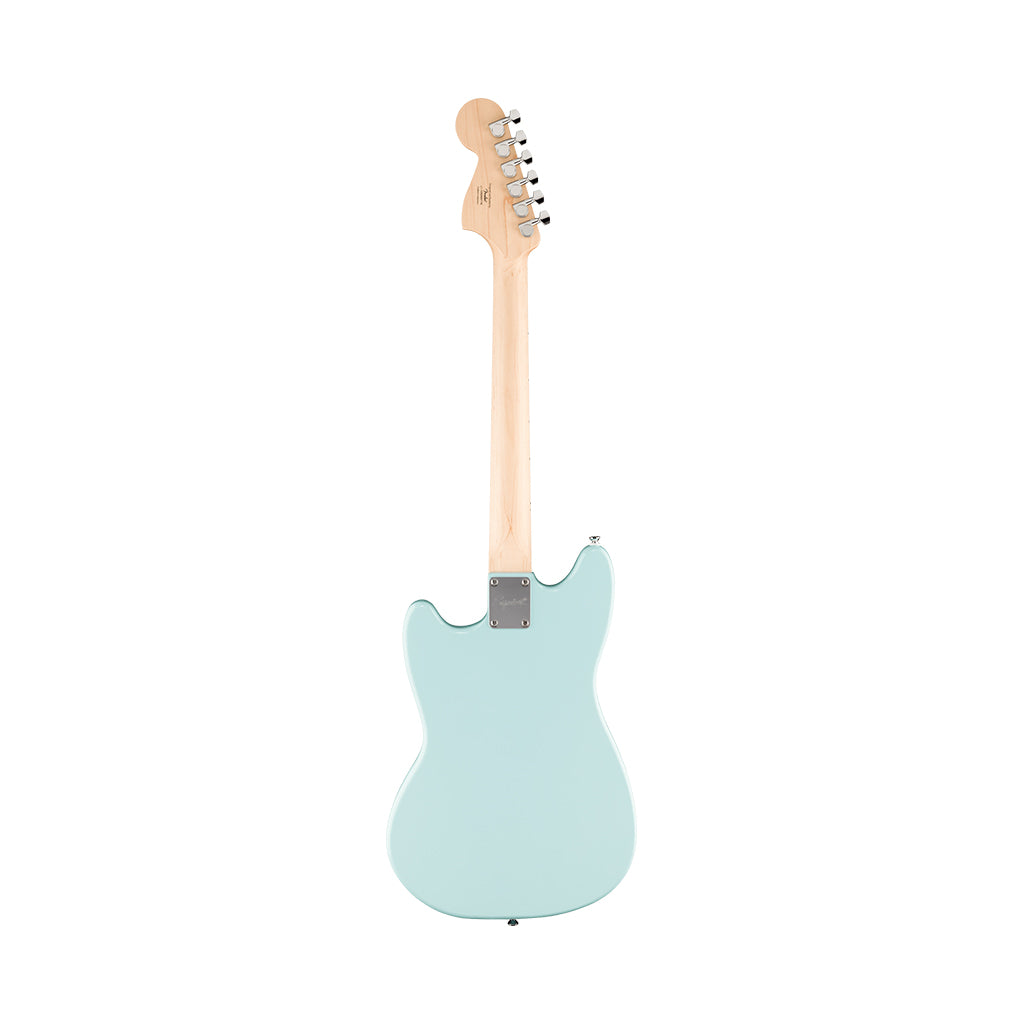 The Squier Sonic® Mustang® is ready to launch any musical adventure into warp speed, offering iconic Fender® style and inspiring tone for players at any stage. This Mustang sports a slim and inviting "C"-shaped neck profile and a thin, lightweight body for optimal playing comfort while a pair of Squier® single-coil pickups chime with crystal clarity for a wide variety of versatile tones. Further details of this model include a short 24" scale length, 6-saddle hardtail bridge for reliable intonation, sealed-gear tuning machines for smooth, accurate tuning and durable chrome-plated hardware that is sure to catch the spotlight.
