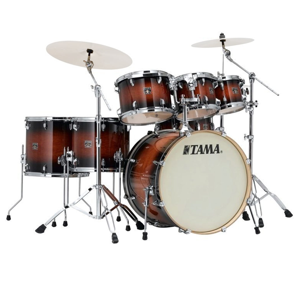 Drawing on SuperStar of the past, its classic Tama T-shape badge and streamlined low-mass single lugs point to the simpler state of art of the 70's, while the ingenious Star-Mount system and new thinner gauge 100% Maple shells eclipse anything in its class This product comes in a 7 piece shell kit in a 18"x22" Bass Drum, 7"x8" Tom Tom, 8"x10" Tom Tom, 9"x12" Tom Tom, 12"x14" Floor Tom, 14"x16" Floor Tom, 6.5"x14" Snare Drum, MTH600 Double Tom Holder & MC69 Single Tom Attachment configuration. This kit comes with a SM5W Hardware pack. Designed with All-Maple Shells, Tom Tom and Floor Tom/SD: 6ply, 5mm / Bass Drum: 8ply, 7mm with a Star-Mount System, Triple Flanged Hoop, and Low-Mass Single Lugs with Claw Hooks w/Rubber Spacers. The Kit has Power Craft II drum heads and Classic Tama T-badge.