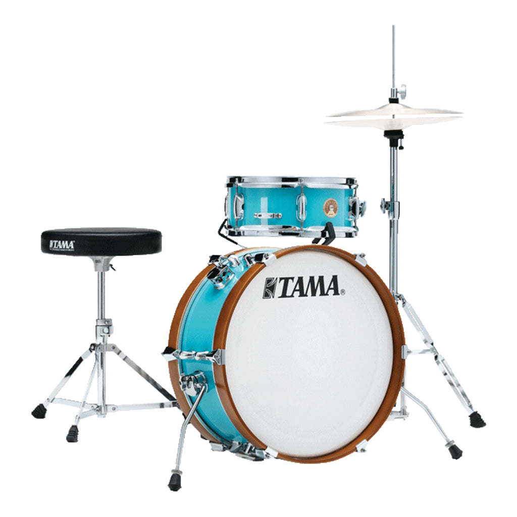 The Tama Club-Jam Mini 2-piece complete kit with 18" Bass Drum in Aqua Blue is part of the 2019 DRUM KITS release in the Club-Jam Mini Series. The simple and sweet Tama Club-Jam Mini kit is just a kick and snare. Its clear yet deep sound from the Mersawa / Poplar hybrid shell is just right for those small and intimate gigs. While it’s compact size and configuration fit comfortably at any small venue or street show. The Drum Bag Set for this kit allows for smooth transportation (sold separately). If one needs to configure it as a regular drum kit, also available are add-on drums including the 7"x10" tom tom with attachment and a 7"x14" floor tom.