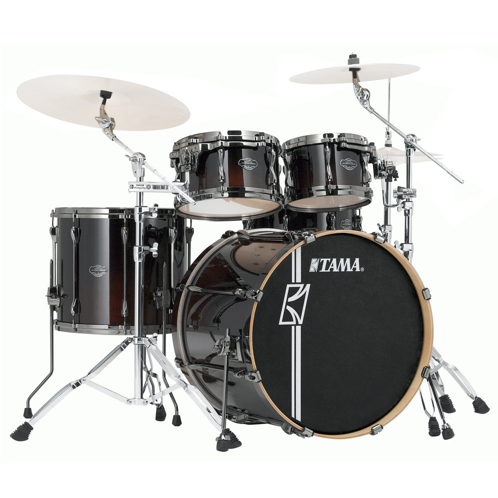 5 Piece Shell Kit in the Tama Superstar Hyperdrive Maple Range in the Lacquer Finishes, available in six colours; Golden Yellow Metallic (GYM), Vintage Blue Metallic (VBM), Classic Cherry Wine (CCW), Dark Mocha Fade (DMF), Flat Black (FBK), and Satin Artic Pearl (SSAP. Includes the Superstar Hardware Kit - Snare Stand, Boom Cymbal Stands x 2, Iron Cobra Hi-Hat Stand and Iron Cobra Single Pedal.