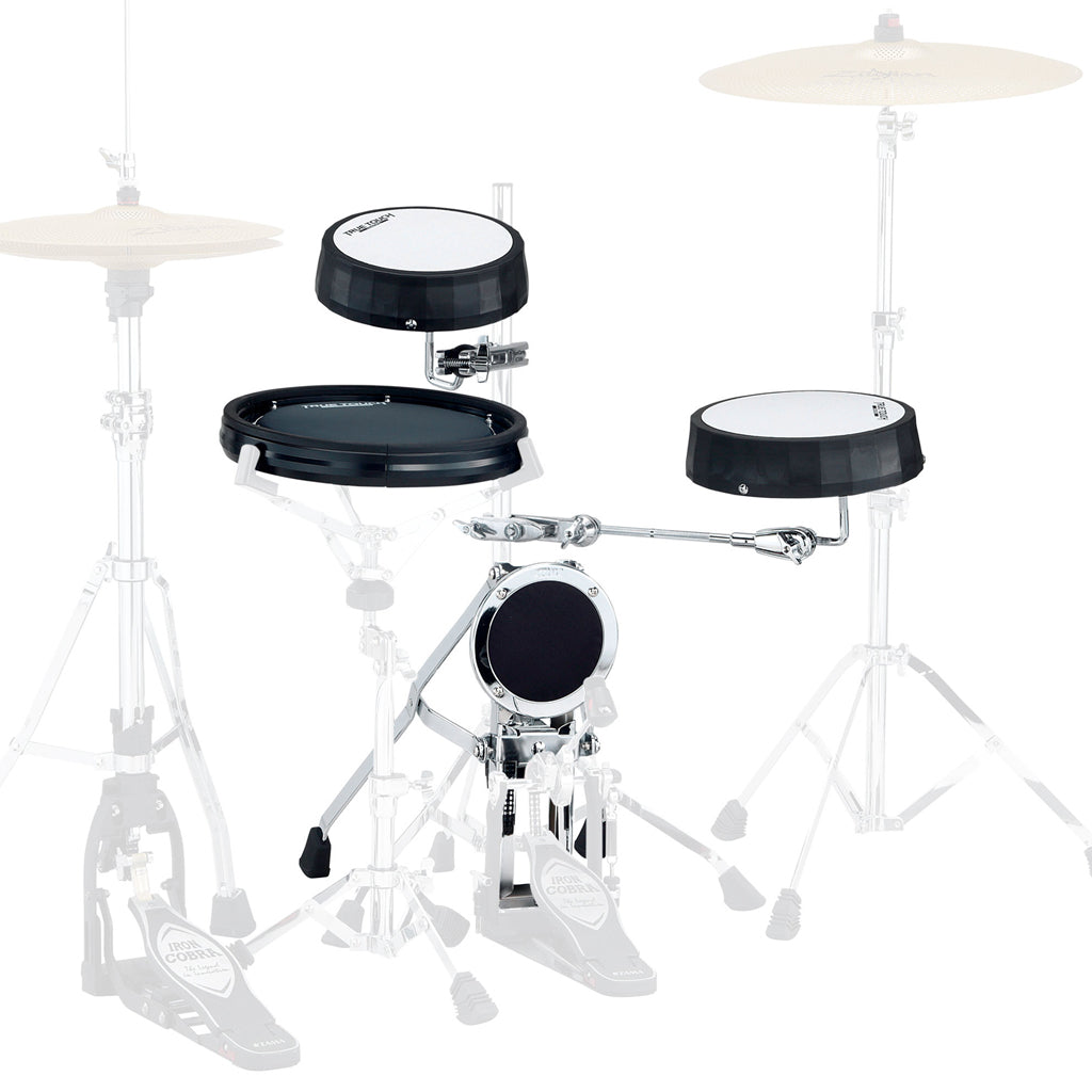 True Touch Training Kit is a revolutionary practice kit that not only offers the low volume required for practicing at home, but also allows drummers to perform critical technique refinement needed to improve their musical expression. The combination of quiet acoustic volume, realistic acoustic touch and sensitive dynamic expression results in a highly satisfying acoustic drum feeling, something that has not been possible with conventional practice kits until now.