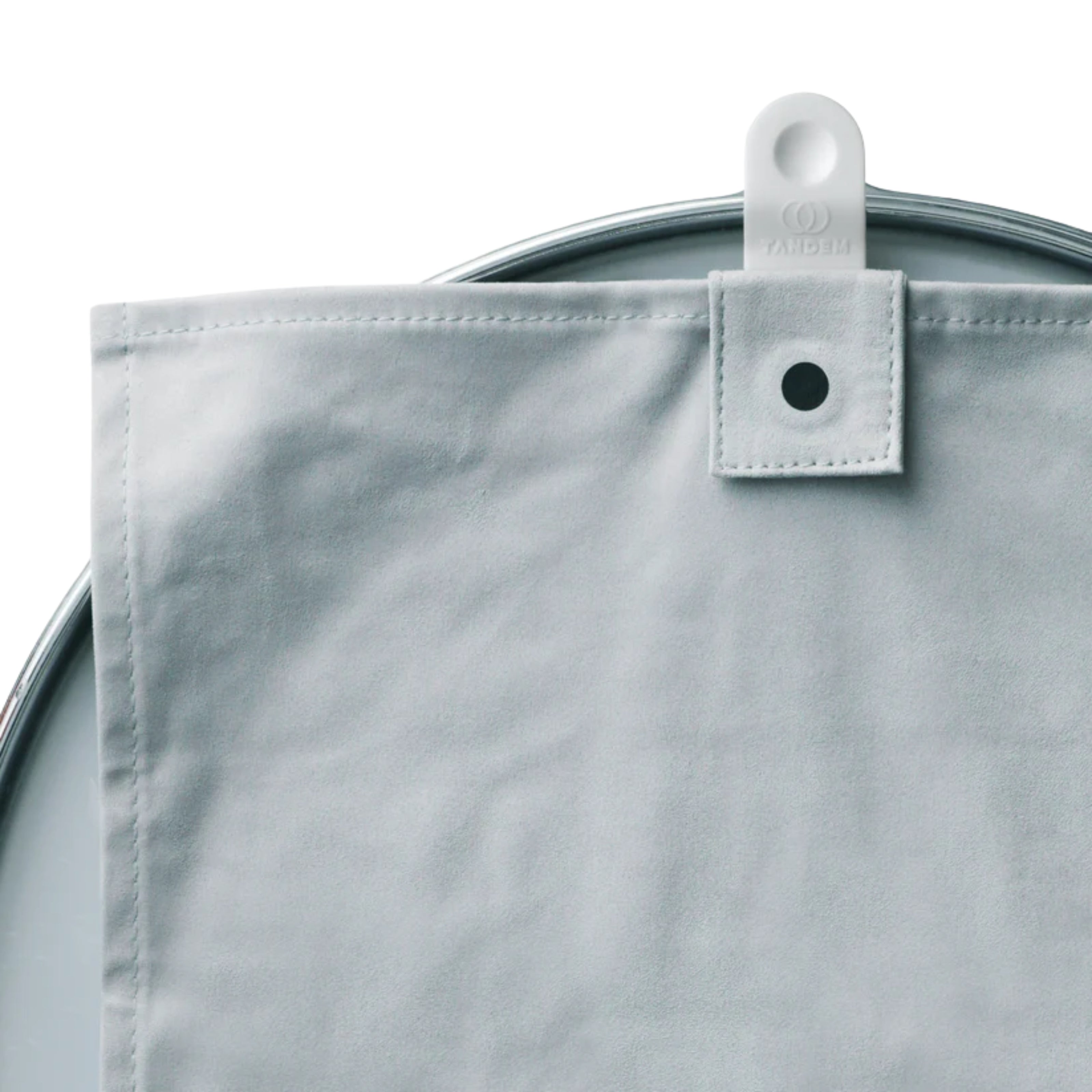 Crafted from T-suede™, Tandem’s proprietary synthetic suede, it delivers a luxurious feel and consistent performance. Each towel includes a magnetic clasp to hold its shape when folded and a silicone tab that attaches easily to any standard tension rod. Designed by Tandem Drums in California, the T-towel is vegan, PVC-free, and packaged without plastic.