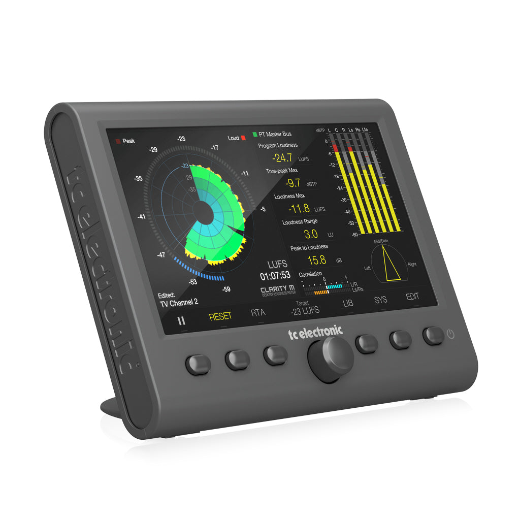 The CLARITY M provides a comprehensive set of precision tools essential to the success of any audio producer. Ideally suited to stereo and 5.1 mixing, mastering and post-production, CLARITY M’s 7 high-resolution LCD display provides a wealth of monitoring information at-a-glance via a single screen. Metering options include; the legendary LM6 Loudness Radar Meter; a state-of-the-art true peak meter; downmix compliance; stereo/surround correlation meters; and a RTA (Real Time Analyzer).